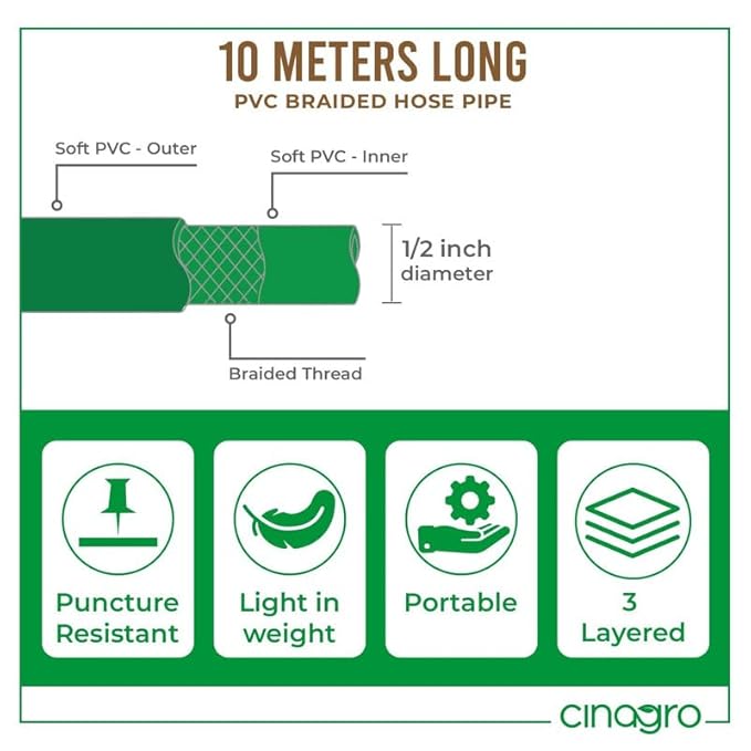 ✅10 Meter Hose Pipe: Strong and flexible pipe for smooth water flow.